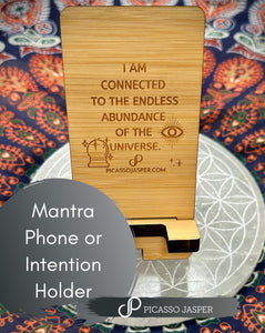 Keep this by your desk as a reminder- YOU are connected to the endless abundance of the Universe! The holder is two pieces. Simply slide the bottom in. Place your phone or use it to hold your mantra card!