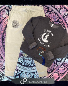 Super soft, 2 pocket teal jogger printed with our fav mandala, yin yang PEACE, LOVE & HIGH VIBES design on the pocket! These are the perfect match to our fleece hoodies. I've paired it here with our Made of Stardust Fleece. Want the set? Click here!
