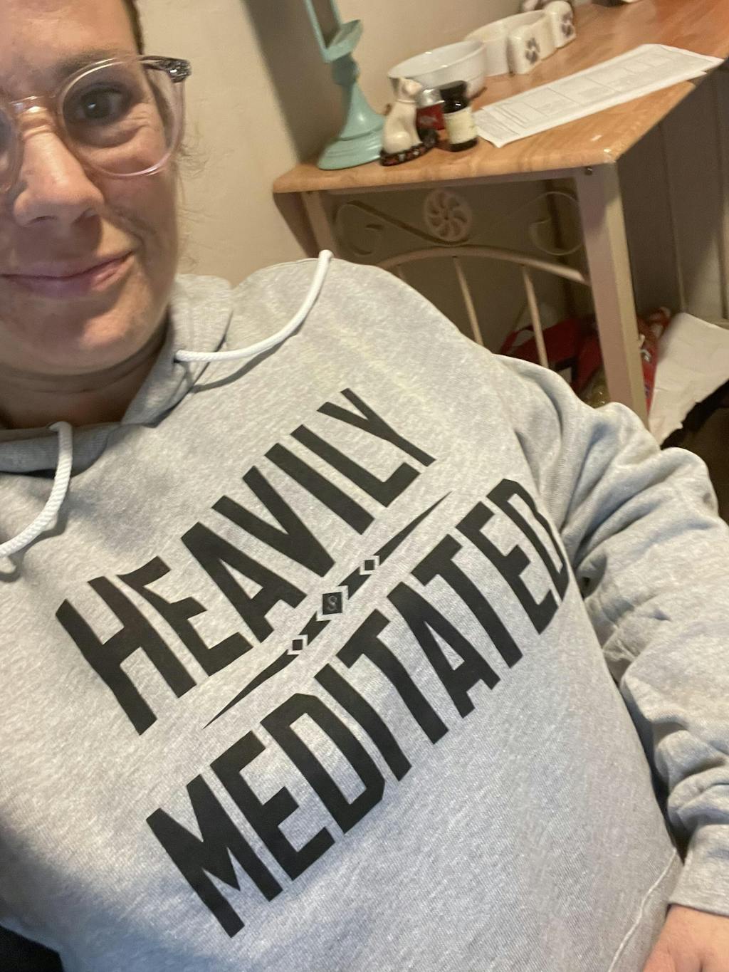 Please Note: This is a light, heather gray sweatshirt with black ink. The perfect cozy!