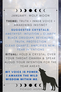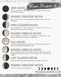 A spiritual guide to the moon phases, pairing each month's symbolic moon theme with empowering mantras & crystal selections for reflection & growth. Includes Moon Phases reference card: Assists you in setting intentions depending on the phase of the moon with suggestions for rituals!