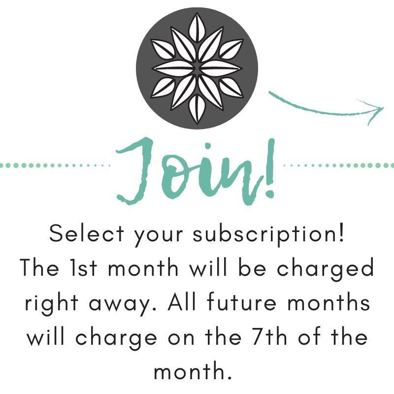 Sign up before the 7th of the month to guarantee that month's subscription. Credit cards will be charged on the day of your first purchase and then the 7th of each month. Your box will ship around the 15th of the month! If you sign up after the 7th, you may have to wait for next month's box.